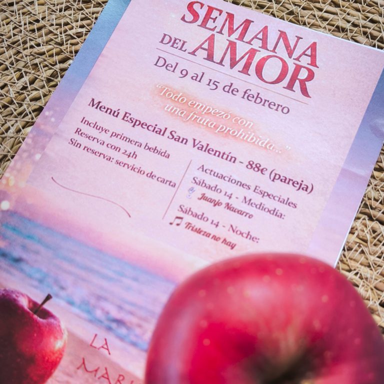 Conoce el Menú Especial de San Valentín en La Marimandona Beach: una propuesta romántica del 9 al 15 de febrero, inspirada en la Fruta Prohibida y acompañada de música en directo.